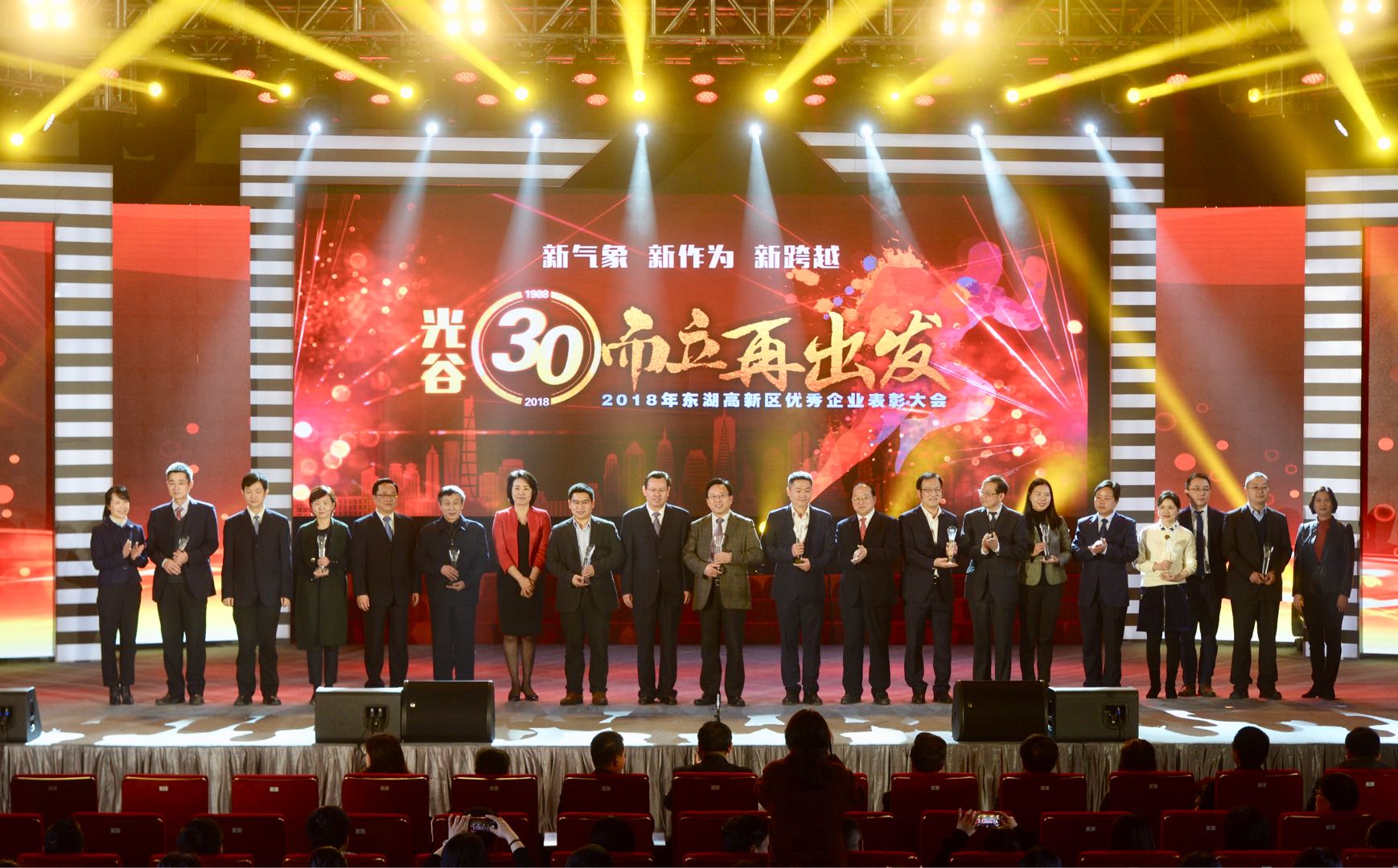东湖高新区管委会主任刘子清主持会议,东湖高新区党工委副书记、管委会常务副主任陈平宣读获奖企业表彰通报。东湖高新区委领导分别为获奖企业颁奖。