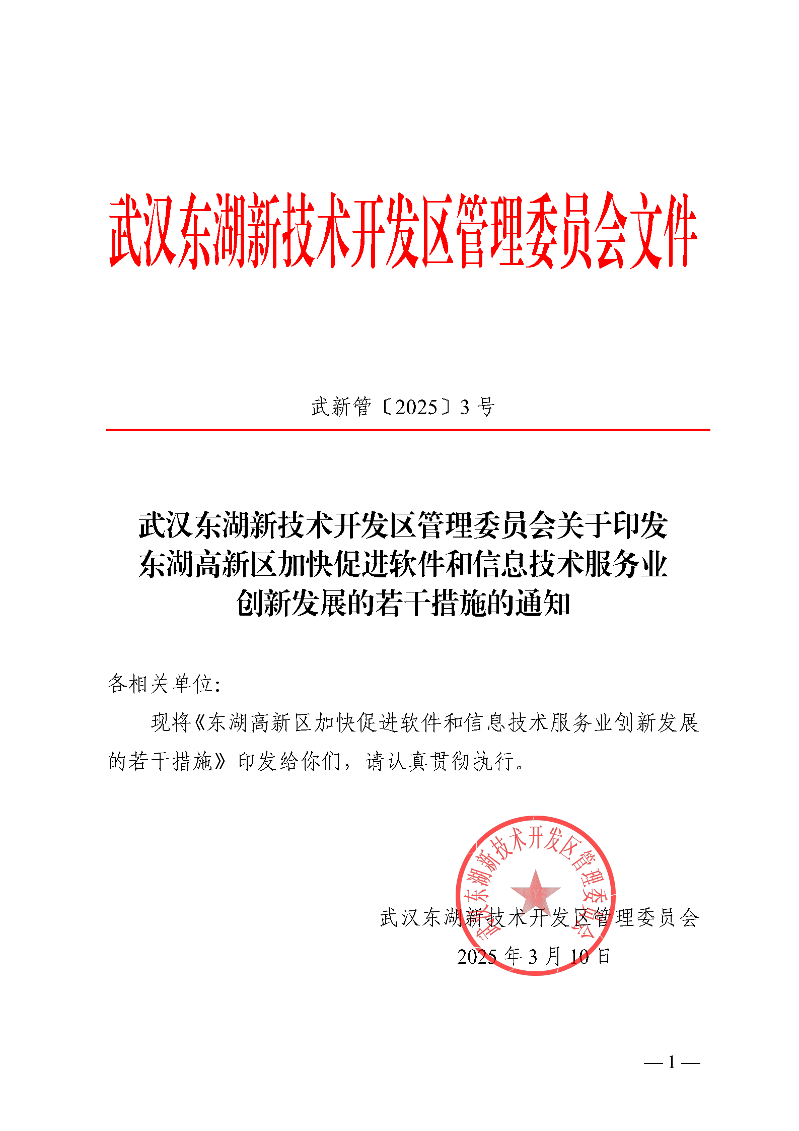 武汉东湖新技术开发区管理委员会关于印发东湖高新区加快促进软件和信息技术服务业创新发展的若干措施的通知