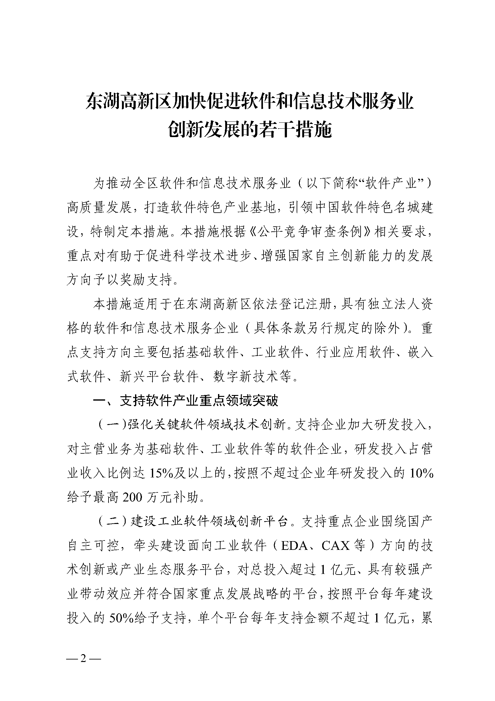 关于《东湖高新区加快促进软件和信息技术服务业创新发展的若干措施》的...
