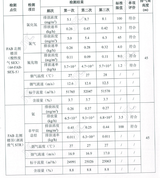 武汉华星光电技术有限公司监测信息