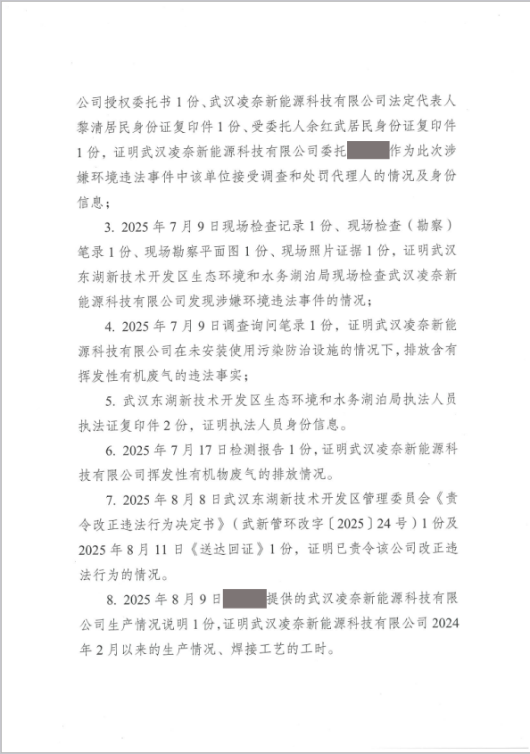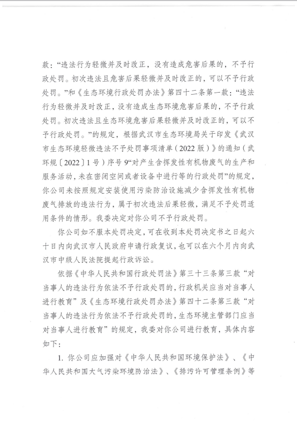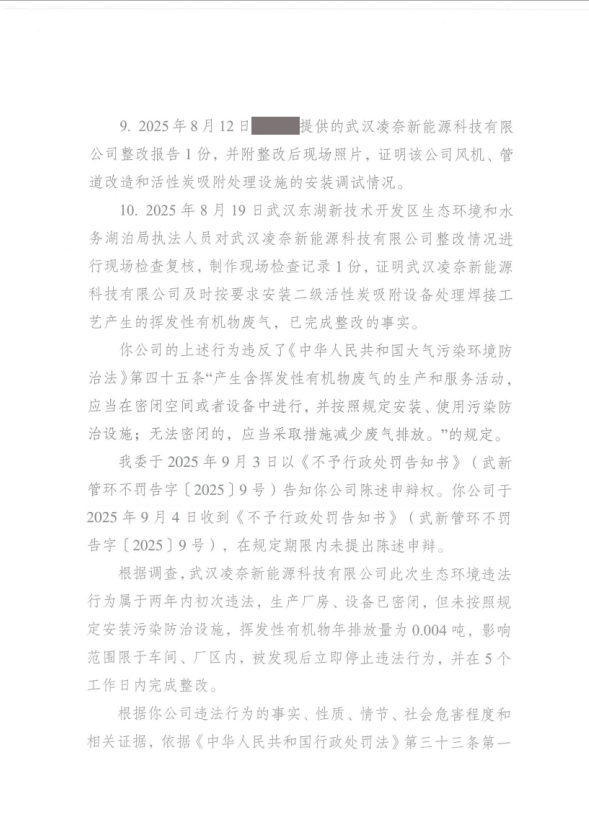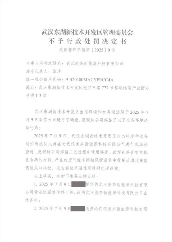 不予行政处罚决定书(武汉凌奈新能源科技有限公司)