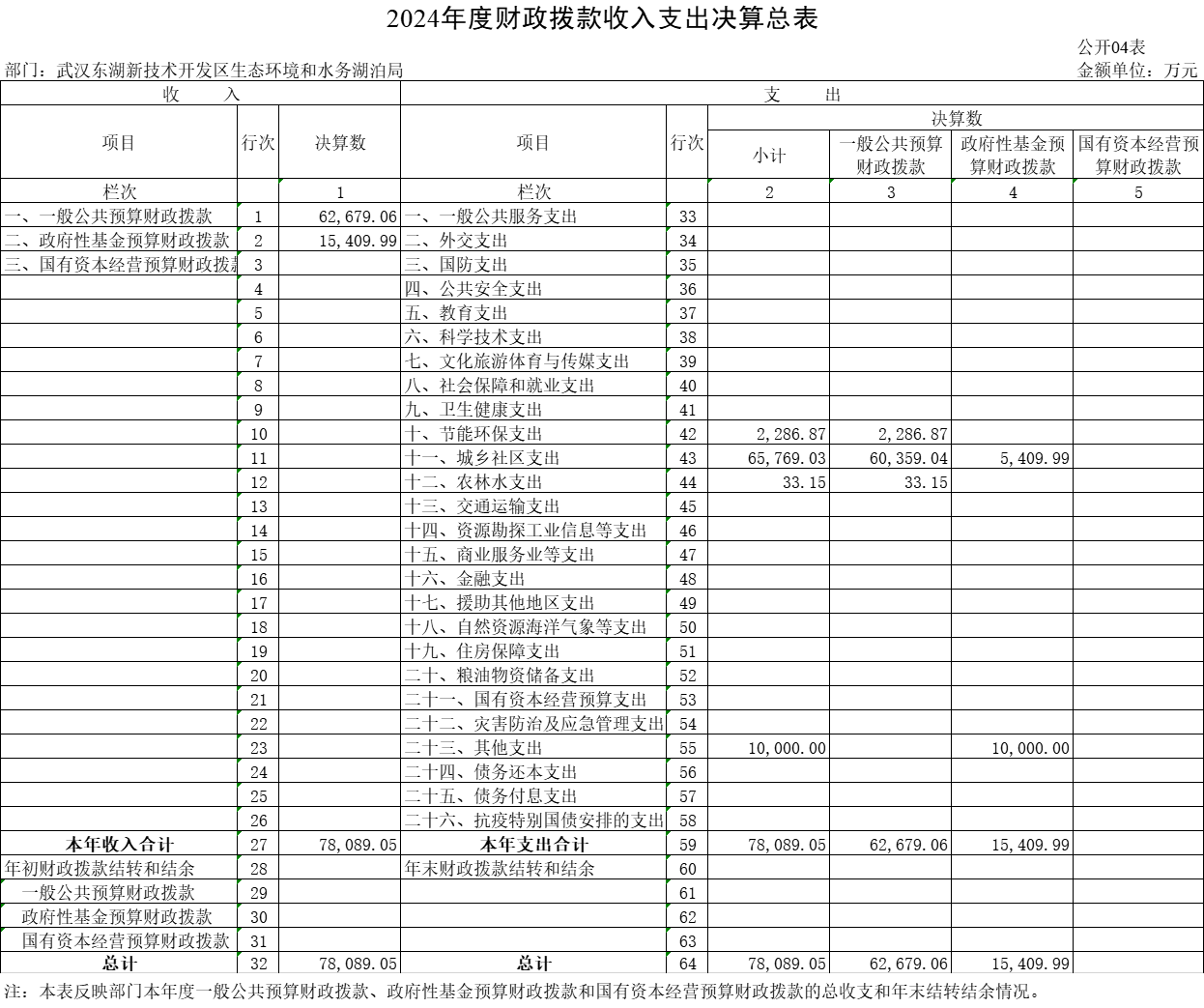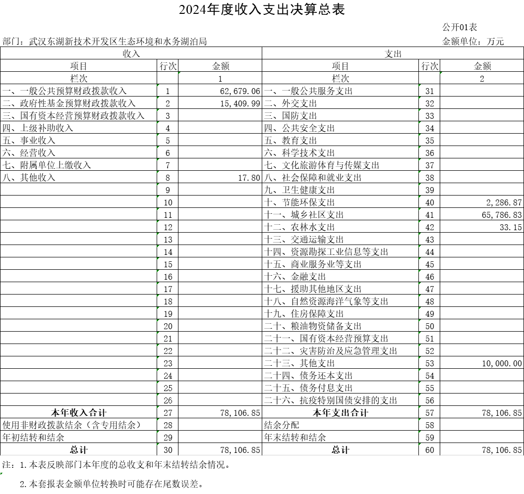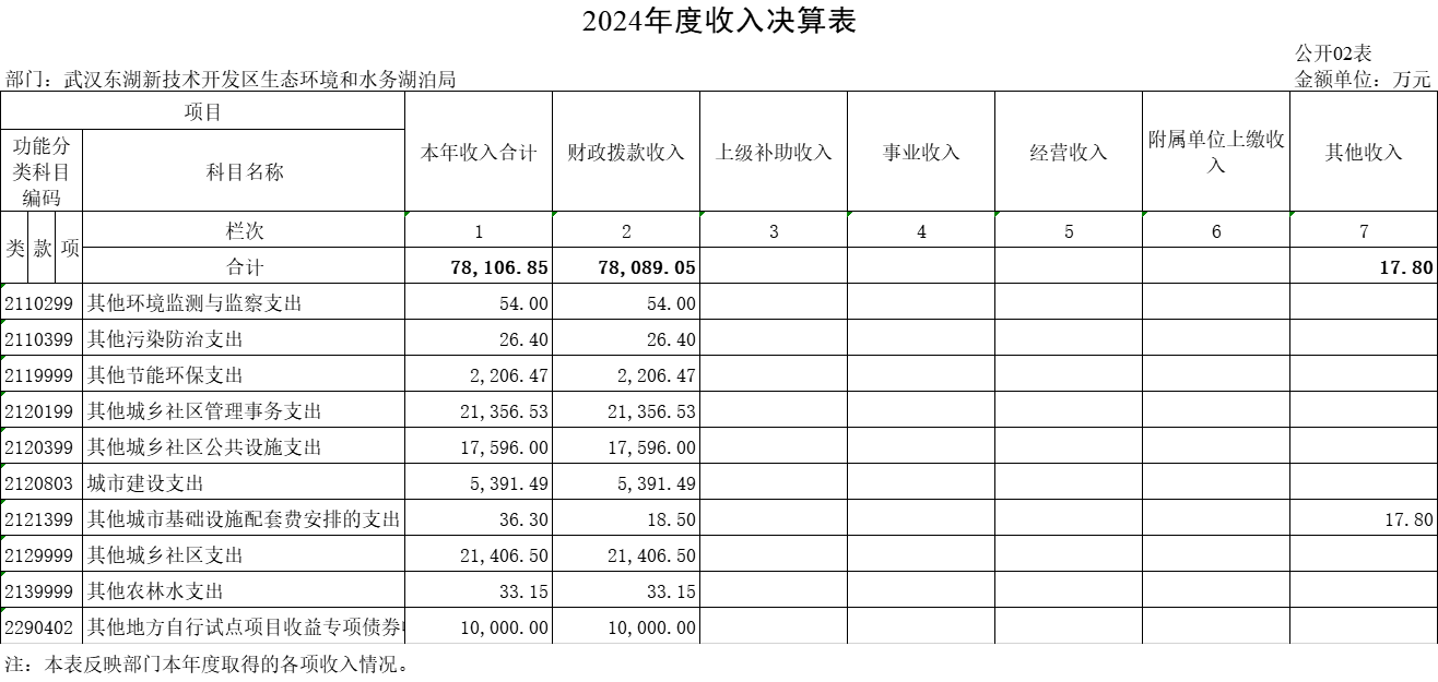 第二部分 武汉东湖新技术开发区生态环境和水务湖泊局2024年度部门决算表
