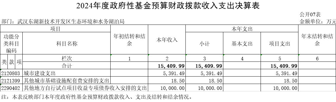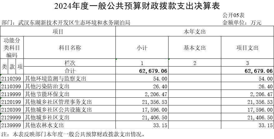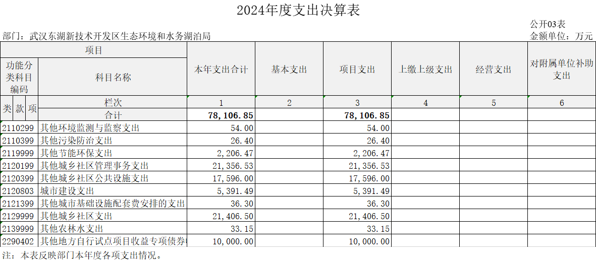 2024年度武汉东湖新技术开发区生态环境和水务湖泊局部门部门决算公开