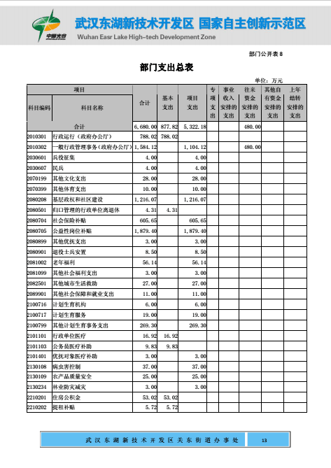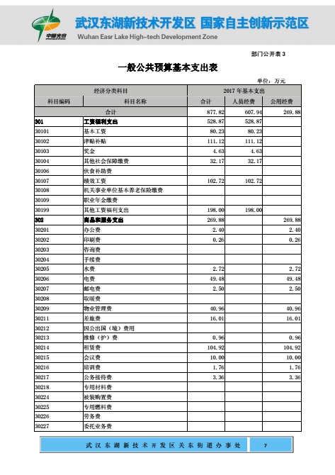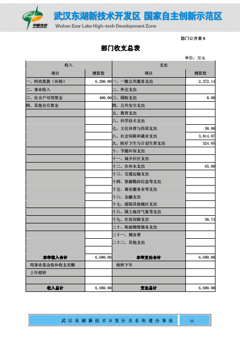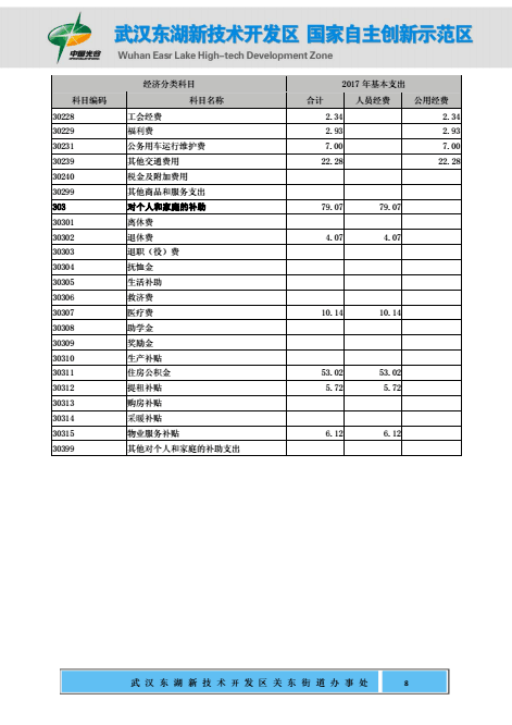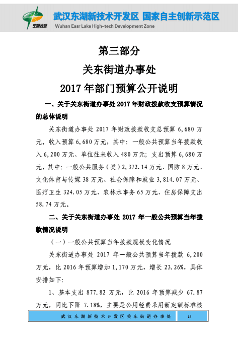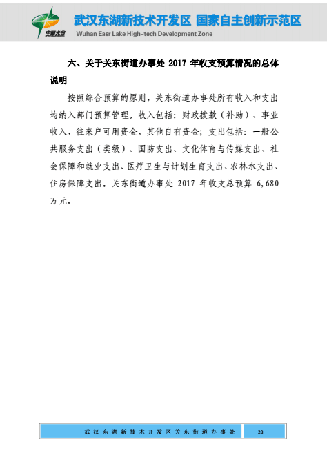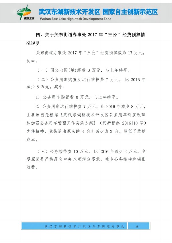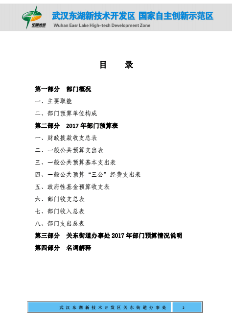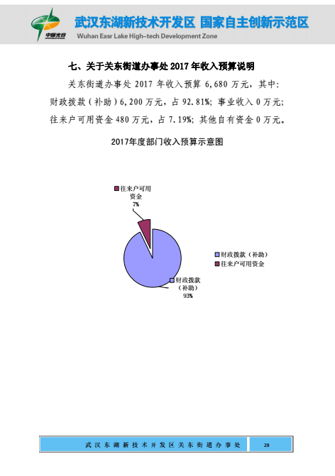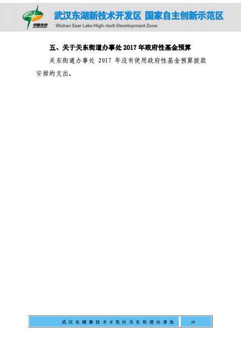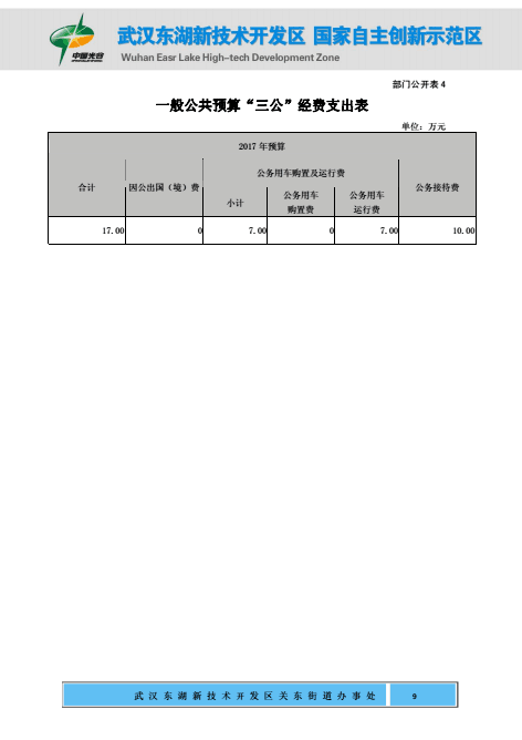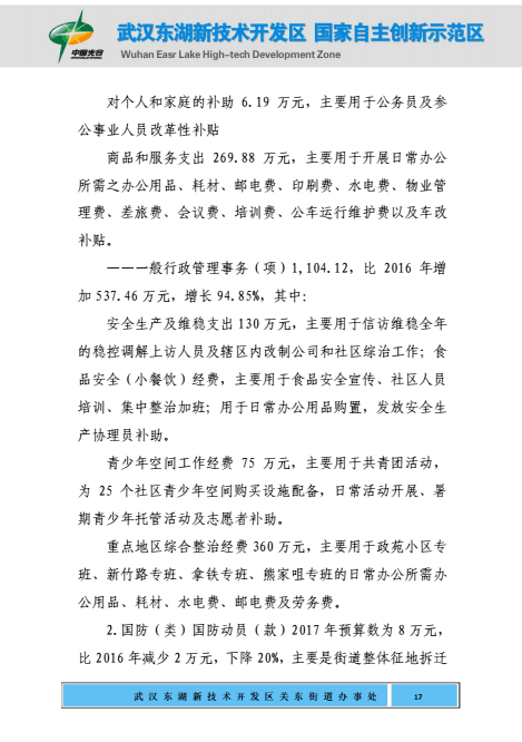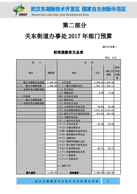 关东街道办事处2017年部门预算公开