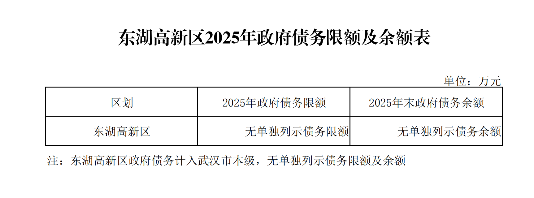 东湖高新区2025年政府债务限额及余额表