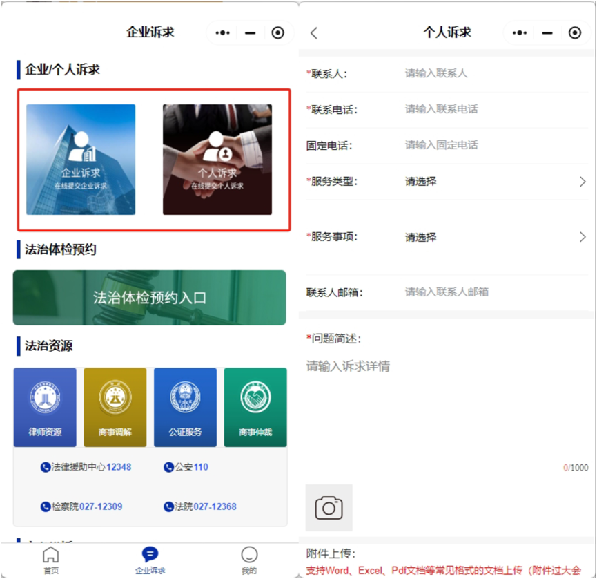还可以搜索“光谷法治营商”微信小程序——点击“企业诉求”——点击“企业诉求或个人诉求”——输入诉求,就可以求助光谷优化营商环境法治服务中心法律服务团队,为您提供详细专业的法律建议。