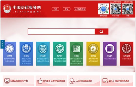 1.12348中国法律服务网(http://www.12348.gov.cn/)