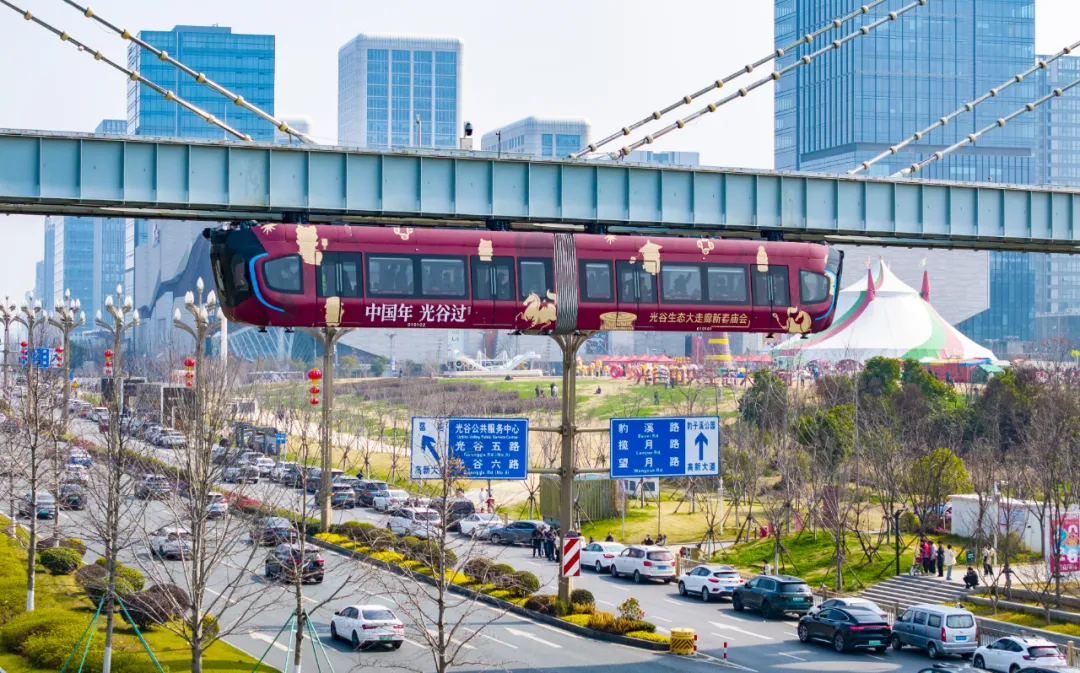 “乘坐空轨俯瞰光谷,脚下是生态大走廊,落地就是新春庙会,这种感觉太赛博了!”正月初五,从河南来汉探亲的张先生一家,将光谷空轨列为必打卡项目。春节期间,光谷空轨推出新春主题列车,吸引近12万人次游客打卡,各大车站常常排起长队。