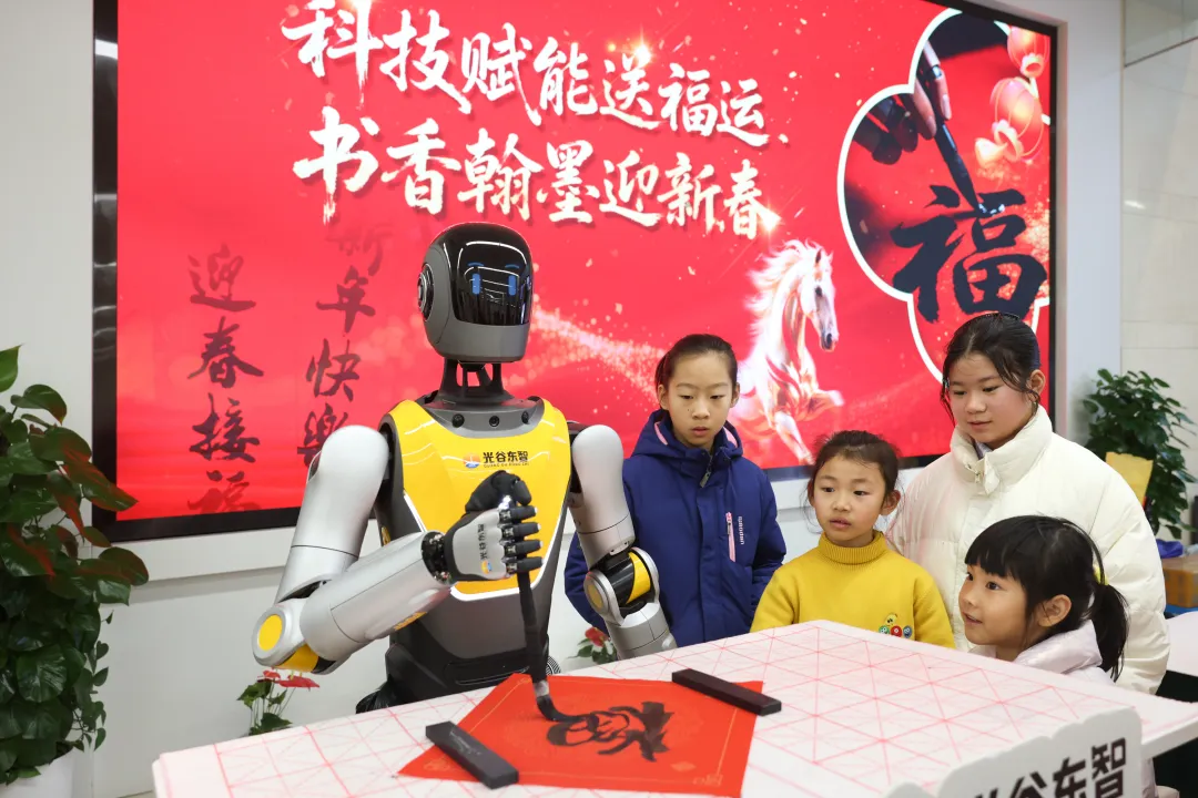 “此次让光子机器人与书法家合作写福字、送春联,不仅是为市民送上新春祝福,更是让前沿科技沾染年味与人情味,让大家近距离感受光谷科技的魅力,也让传统年俗焕发新活力。”光谷东智刘心语介绍,现场,光子机器人还向所有人送上新春问候,提前拜个早年。