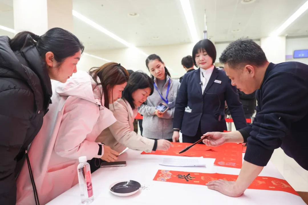 前来办事的市民陈紫雍领到了心仪的春联,他说:“在政务大厅办事之余,能邂逅这样一场活动,真切感受到光谷浓厚的科技气息,年味一下子就浓了!”