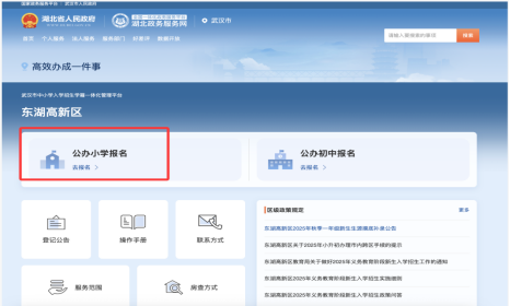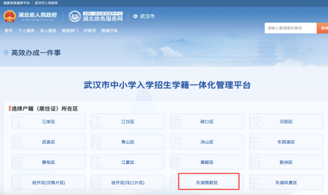 (2)选择“东湖高新区”报名,选择“公办小学报名”入口。