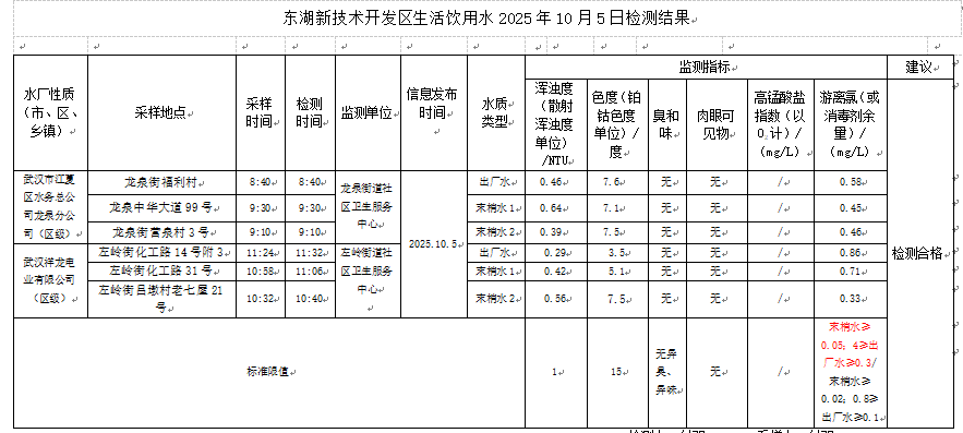 东湖新技术开发区卫健局水质日监测公示