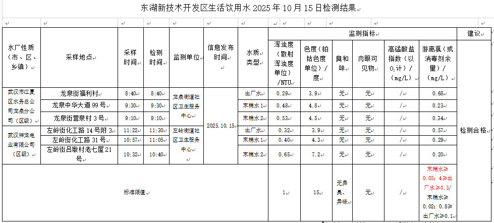 东湖新技术开发区卫健局水质日监测公示