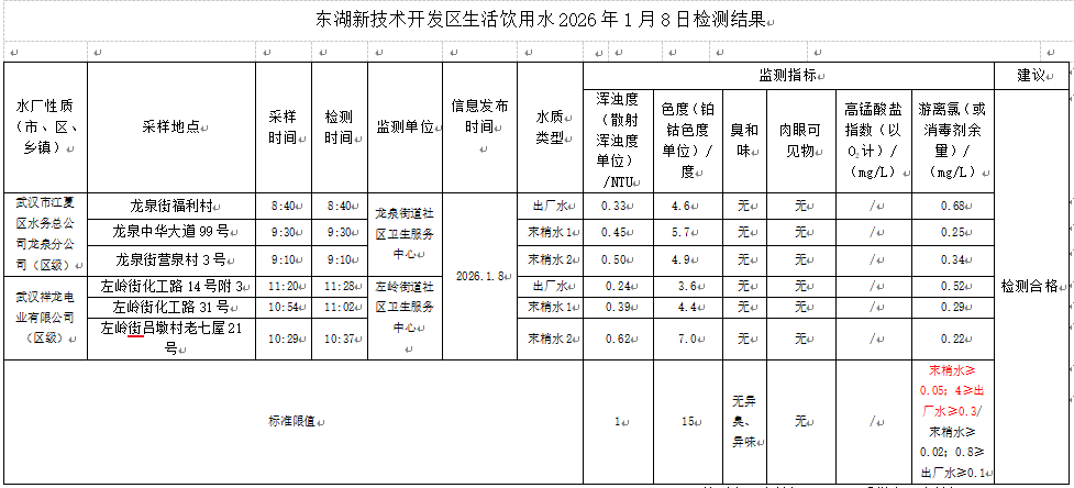 东湖新技术开发区卫健局水质日监测公示