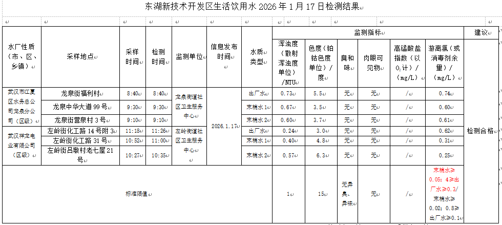 东湖新技术开发区卫健局水质日监测公示