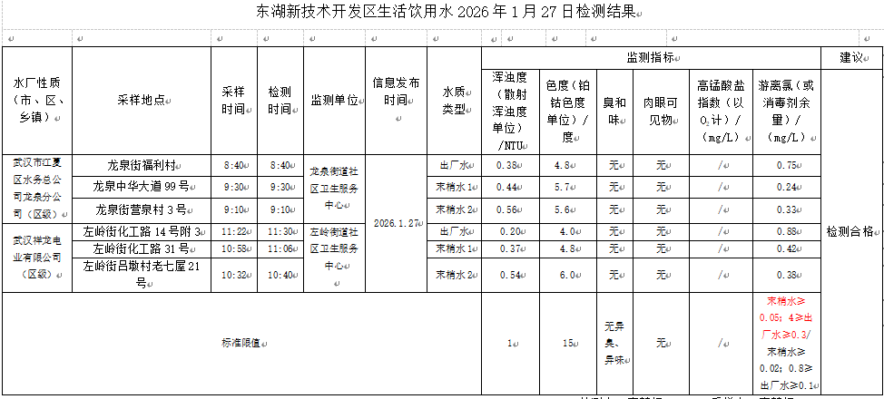 东湖新技术开发区卫健局水质日监测公示