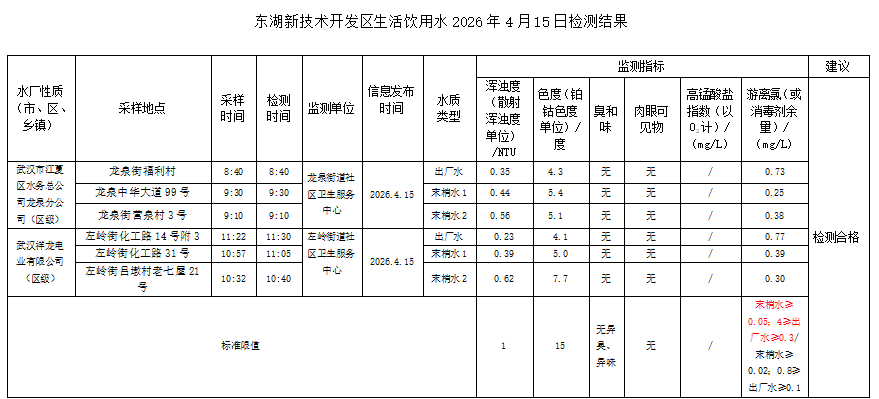 东湖新技术开发区卫健局水质日监测公示