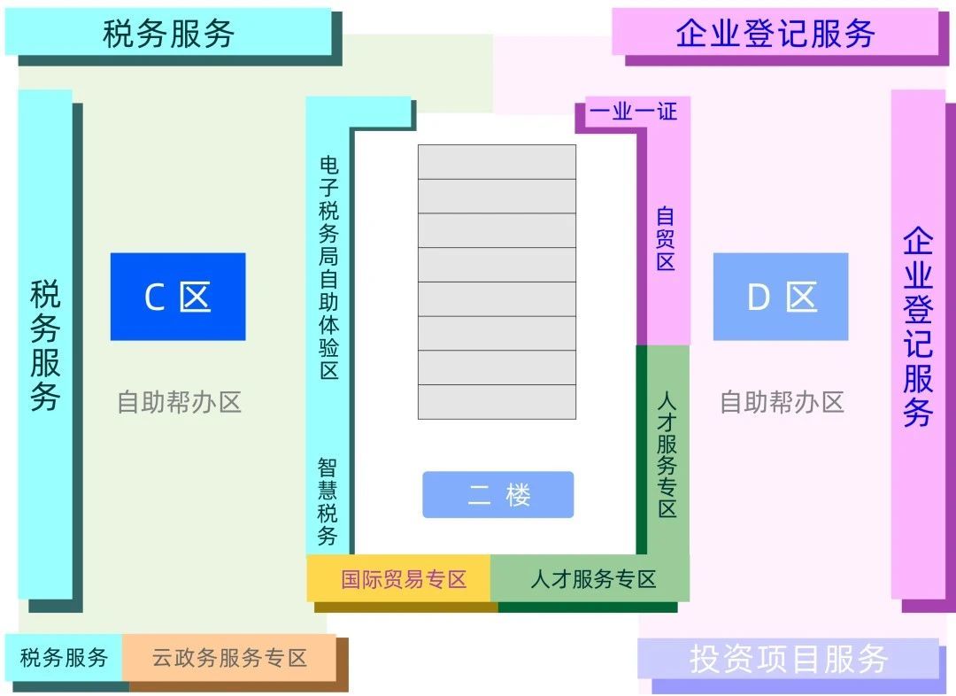 这个“超级办事大厅”分上下两层,布局科学又清晰,下面,就跟小编一起来看看各区域可以办什么事吧!