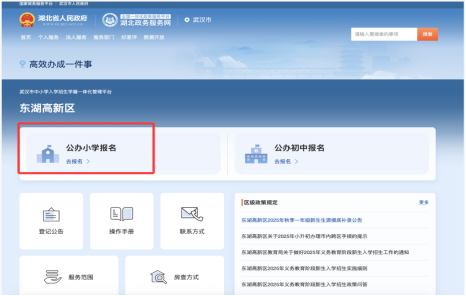 2026年秋季小学新生入学登记流程主要包括两个步骤,一是家长注册,孩子监护人如首次使用“湖北省政务服务网”,需先在“湖北省政务服务网”(或鄂汇办APP)上完成新用户注册。二是新生入学登记,家长访问“湖北省政务服务网”,个人登记后返回首页,点击“高效办成一件事”,点击“教育入学一件事”,选择区划“东湖高新区”,选择“公办小学报名”按钮。建议通过电脑端访问湖北政务服务网“高效办成一件事”专区(网址https://zsrx.whebd.cn)直接办理。