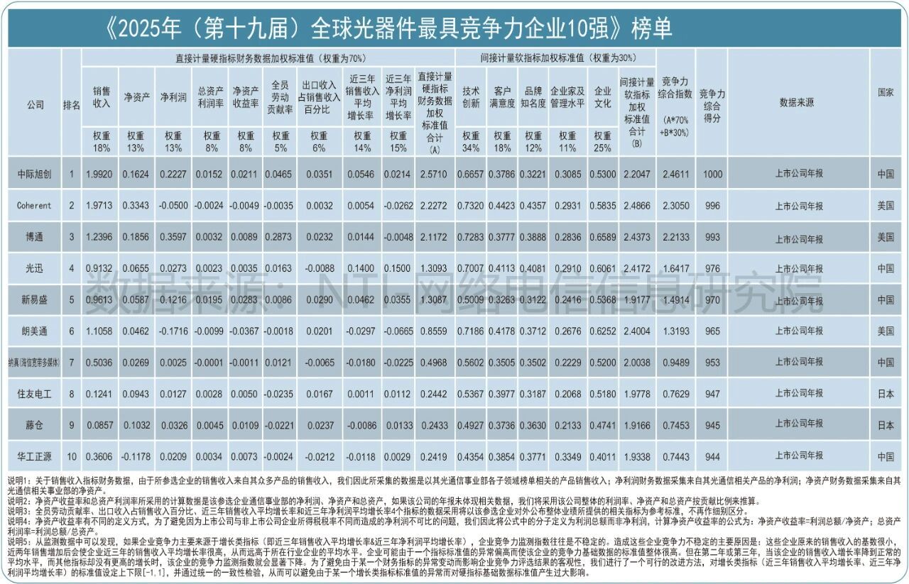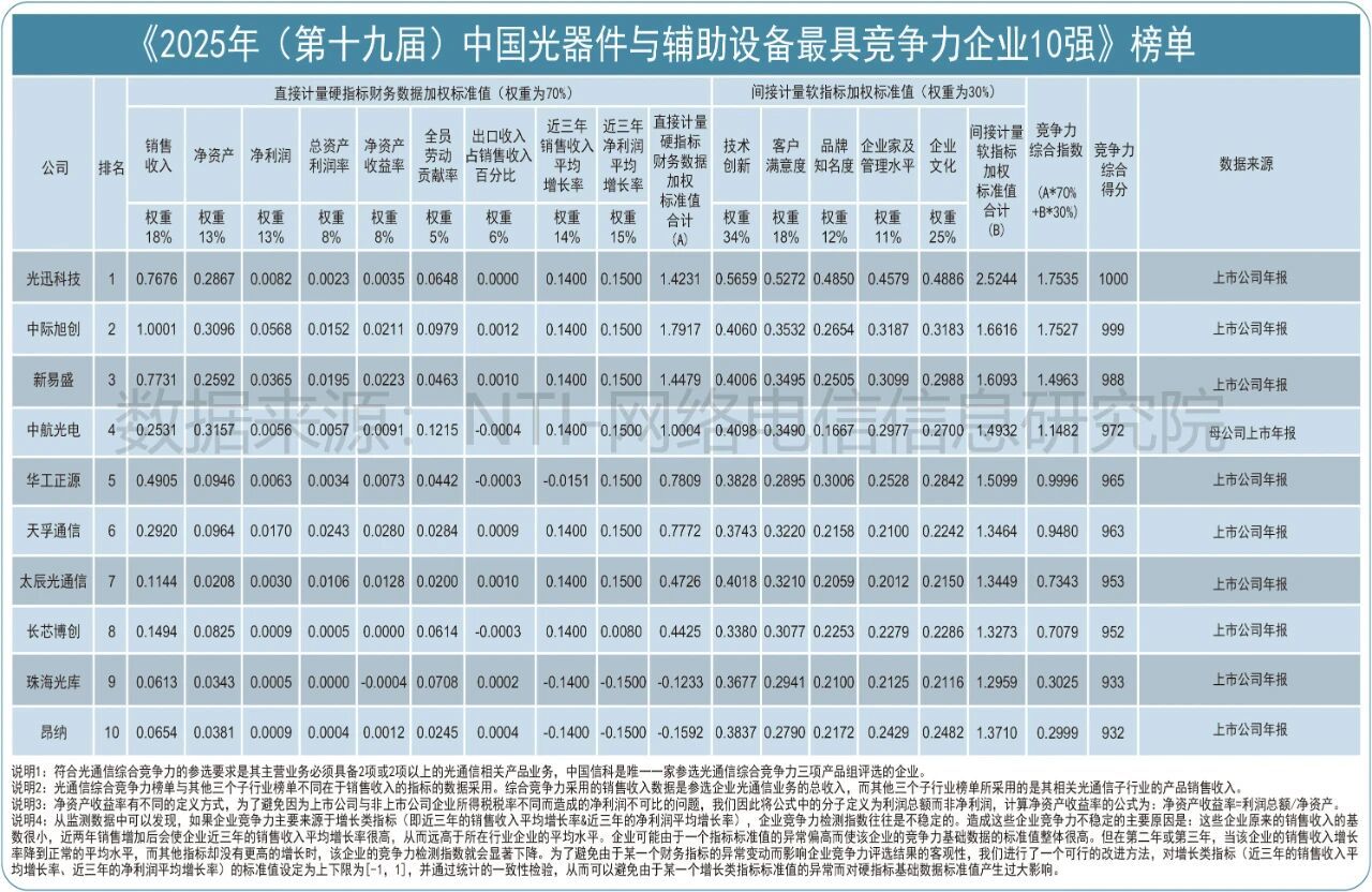 该评选由中国通信学会光通信委员会与亚太光通信委员会联合主办,至今已举办19届。评选综合考量企业品牌、规模、市场表现、产品性能及增长等核心指标,在行业内具有较高权威性。详细榜单如下: