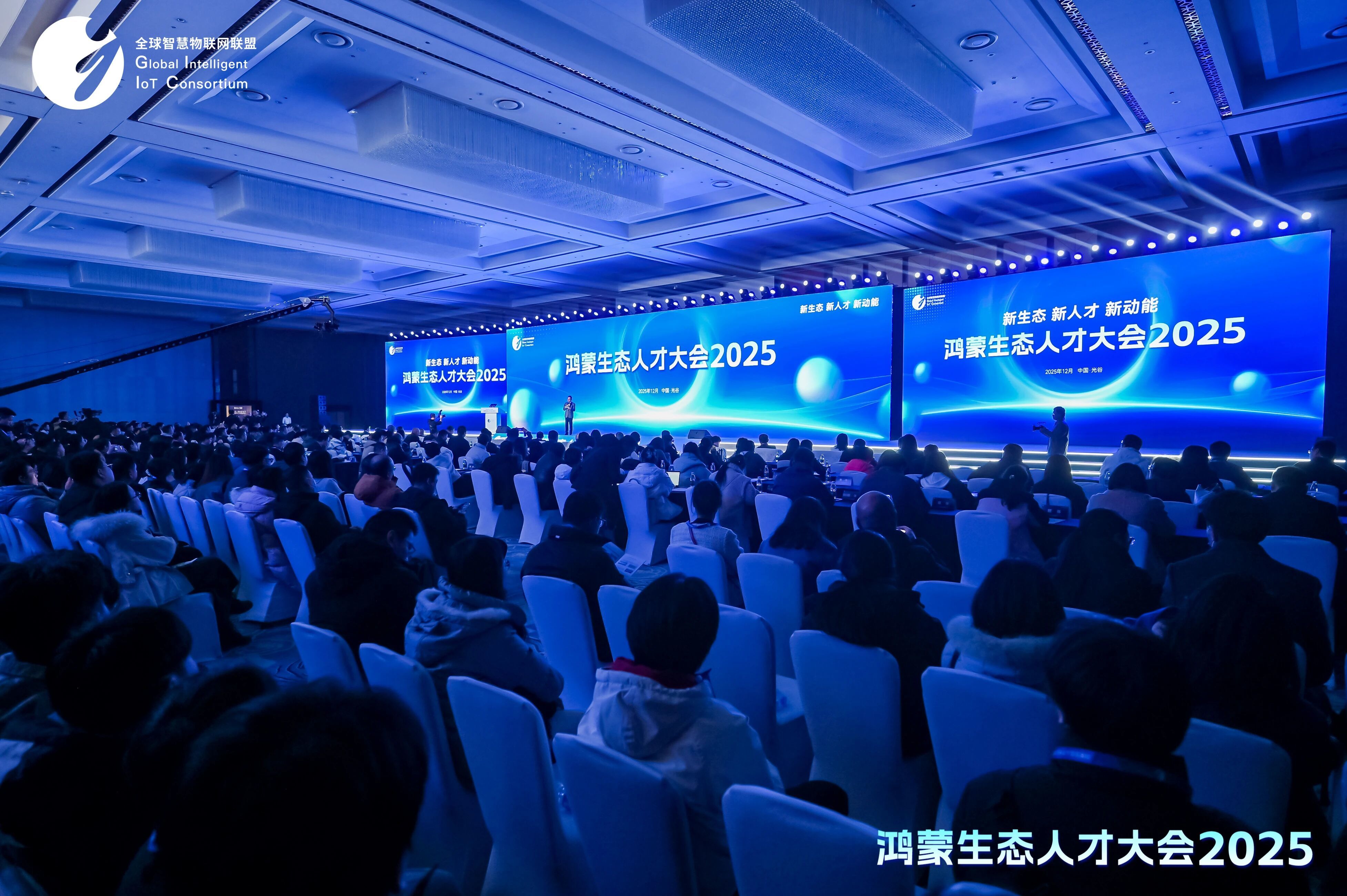 大会由全球智慧物联网联盟(GIIC)主办,鸿蒙生态服务(深圳)有限公司、鸿蒙生态(武汉)创新中心联合承办,以“新生态、新人才、新动能”为主题,吸引来自政府、高校、企业等1200余名行业代表参会。鸿蒙是全栈自研的国产操作系统,截至2025年10月,已有超11.9亿台设备接入鸿蒙生态,同比增长约32.3%。会上发布的《鸿蒙人才白皮书2025》指出,鸿蒙生态规模日益增长的同时,未来3-5年面临百万级人才缺口,就业岗位需求达100至300万。